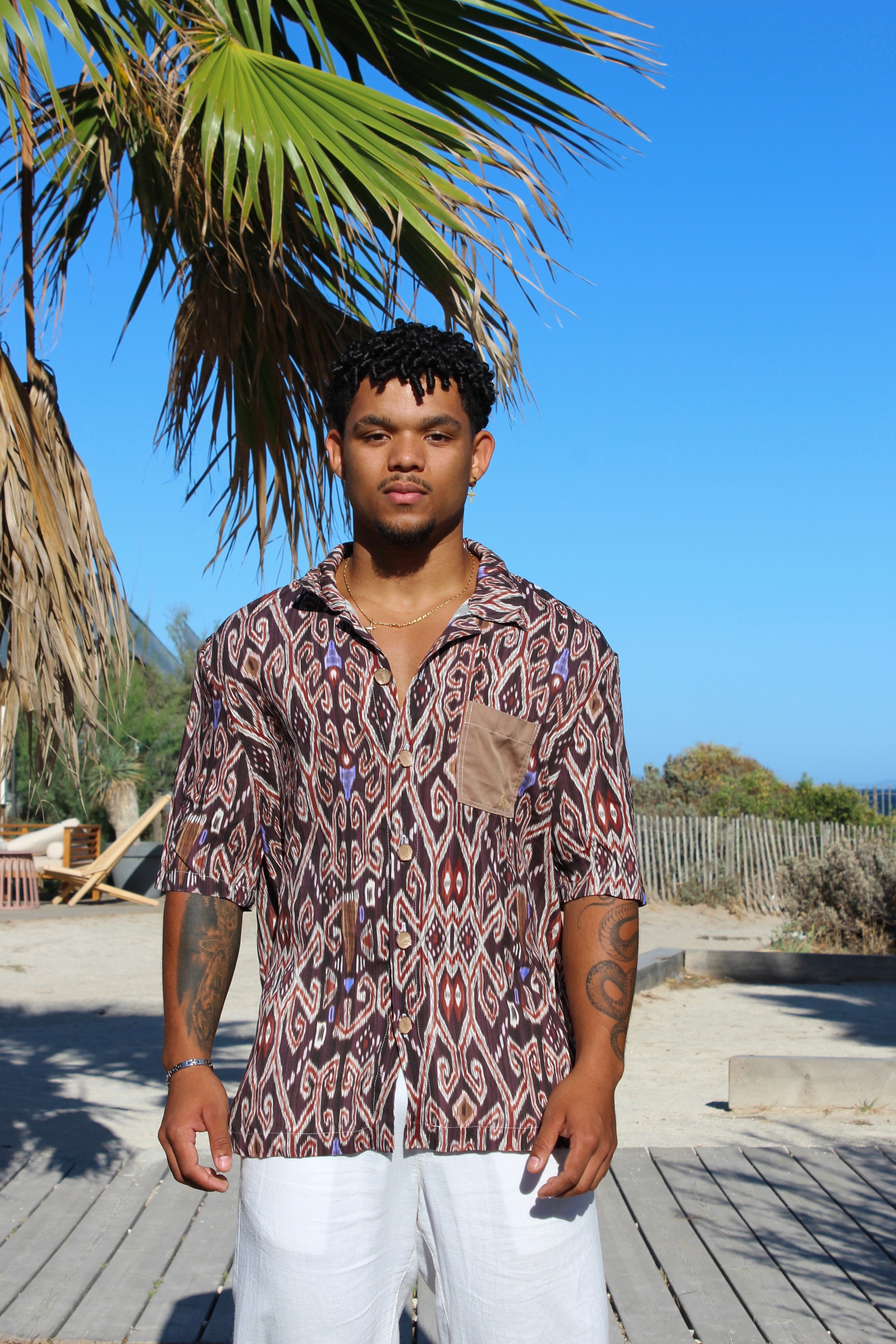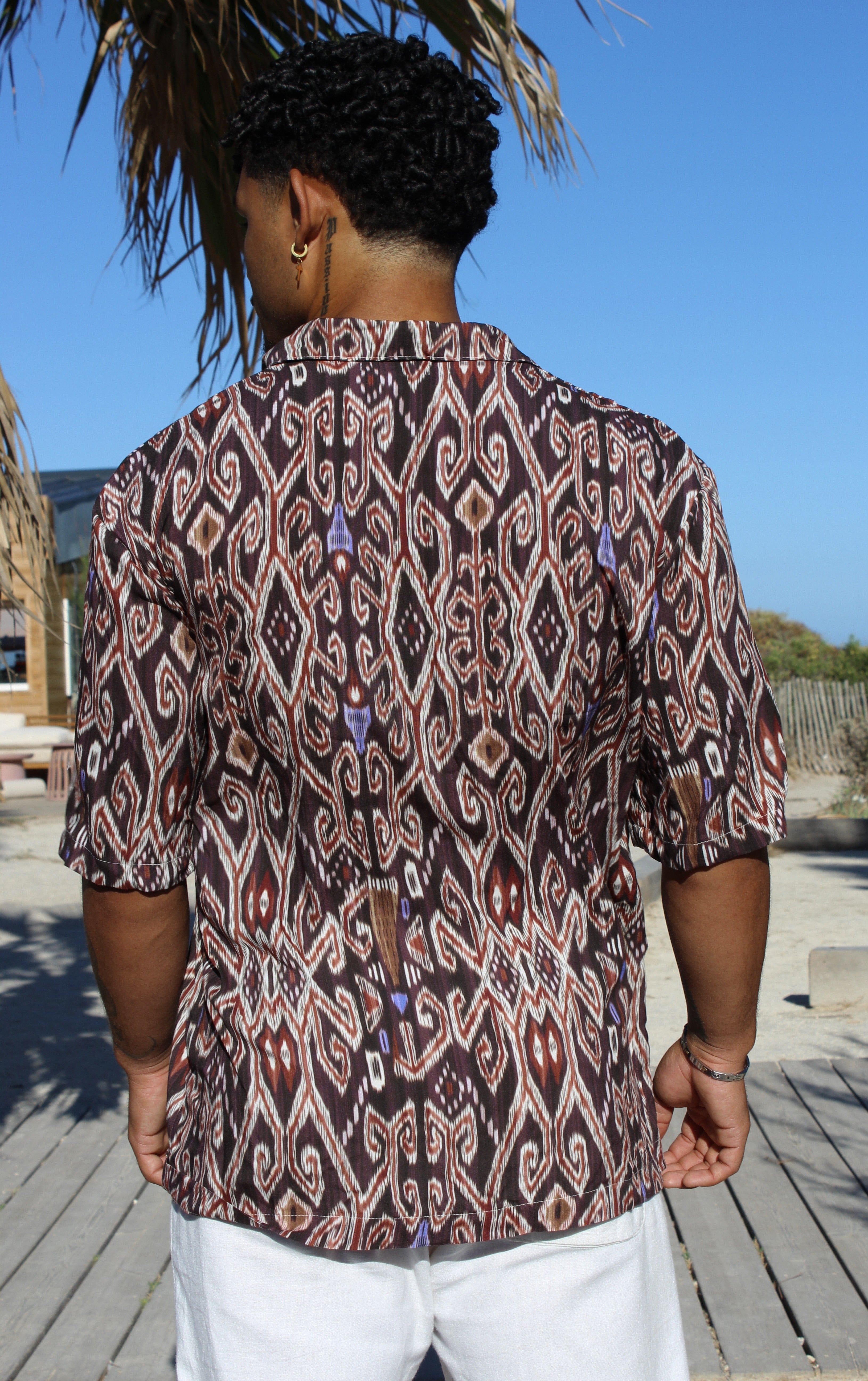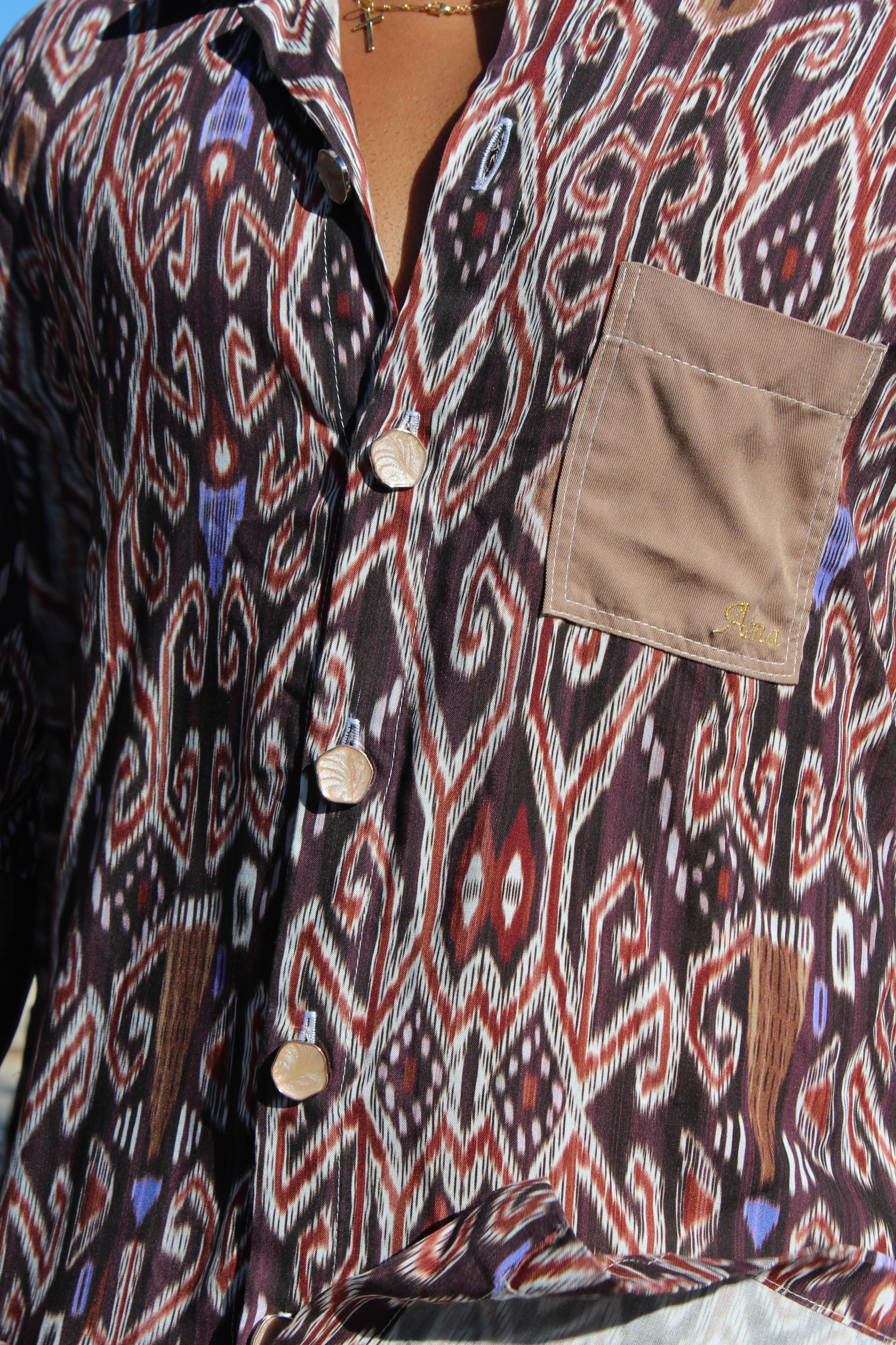 Chemise inspiré des motifs ikat qui rappelle une partie de l'atlas.